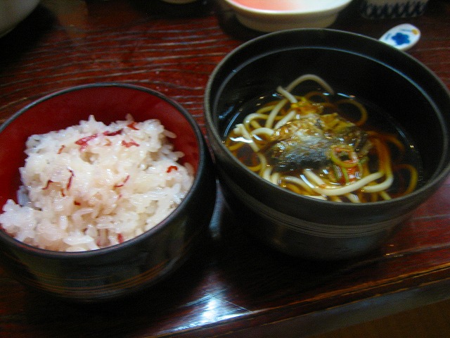 茶碗蒸しに梅ご飯と鰊蕎麦。お腹も一杯になってきます。