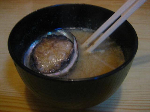 あわびのみそ汁です。さすがにこんな贅沢なみそ汁は初めてです。