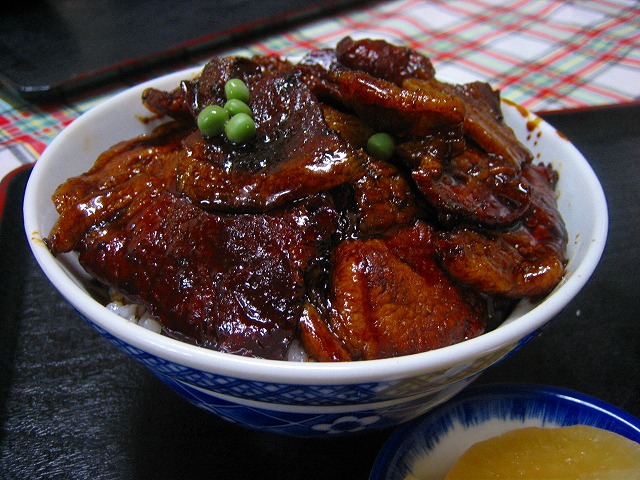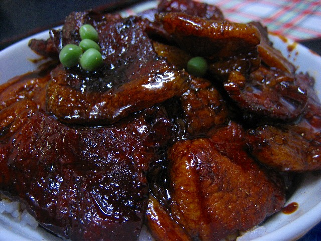 肉質はやや堅めで、帯広豚丼特有の甘辛な濃い味付けです。
