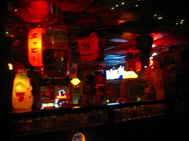 店内は古い映画のポスターが天井いっぱいに貼られ壁には古いネオンや