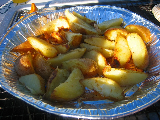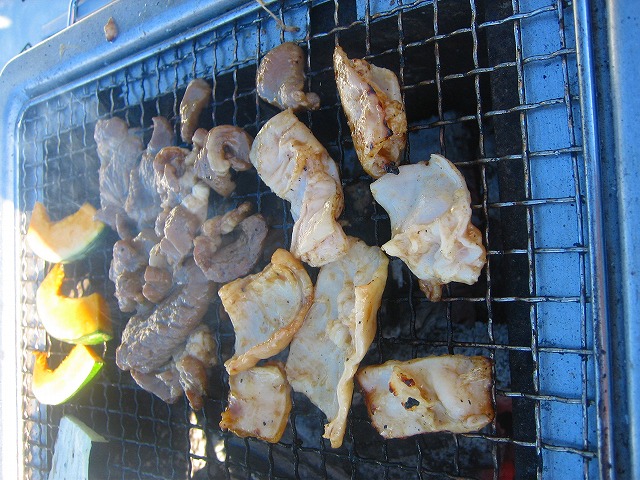 設営に時間を要しなかったので、早速炭の火起こしをして、バーベキュー