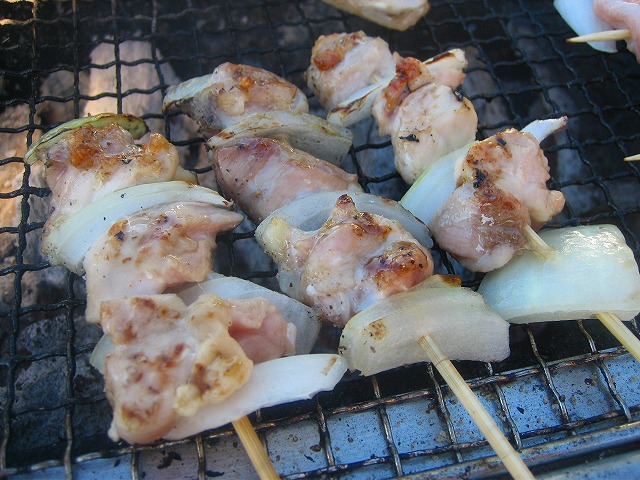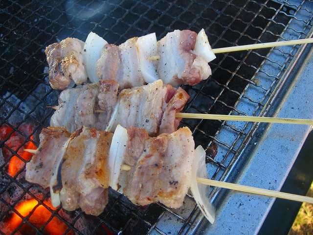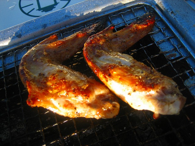 前日に自ら串刺しした豚串と鳥串、手羽先などです。