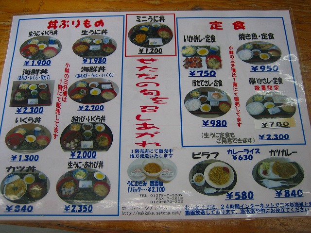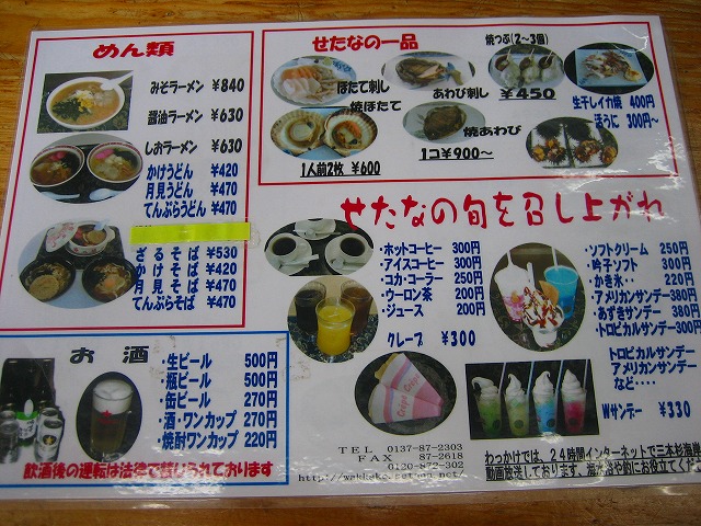 瀬棚の海の幸メニューから麺類まであります。