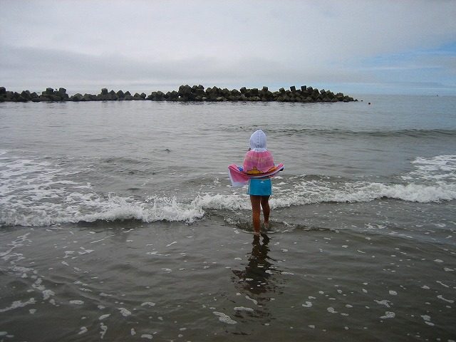 泳いでいる人は少なかったのですが、娘は喜んで海に入りに行きました。