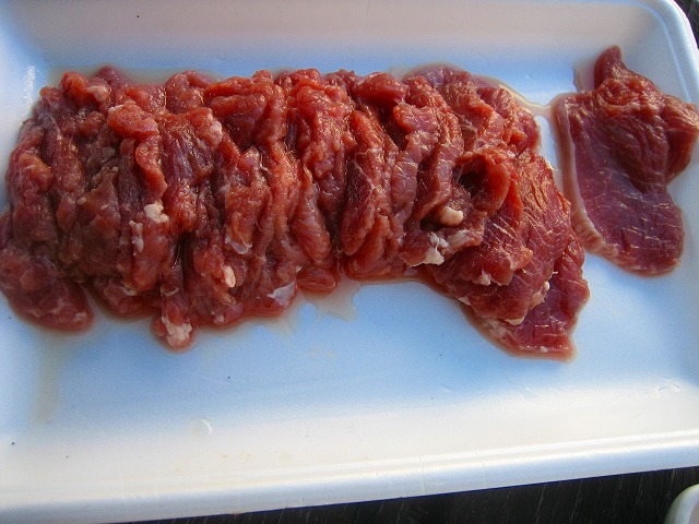 い生肉の刺身でした。(これを食べられたのは早く来た人だけでした)
