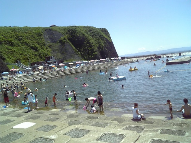 ここの海水浴場は、透明度が高く、ほどよい波で絶好の海水浴場ですがどこからも遠いため、人が多くありません。