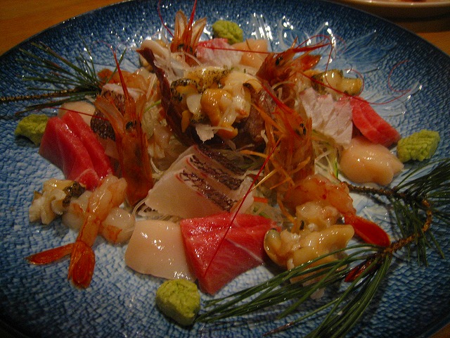 お刺身の盛り合わせは、盛りつけにも工夫がされています。