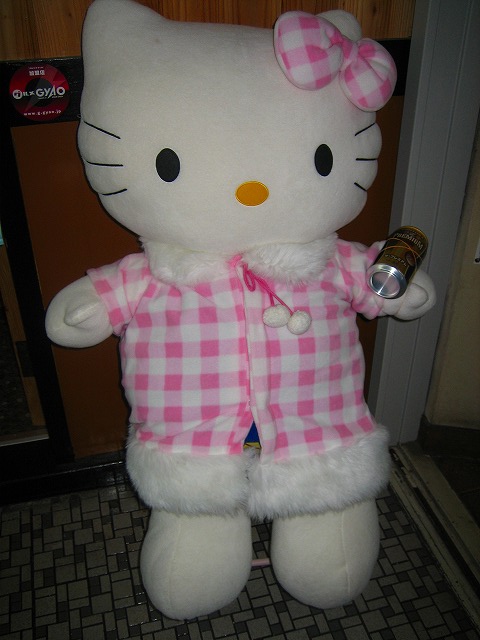 店前にはジャンボキティーがビールを持ってお出迎えです。