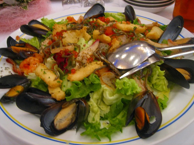 エビのフリッタやホッキなどが混ざったサラダです。美味しかった!。
