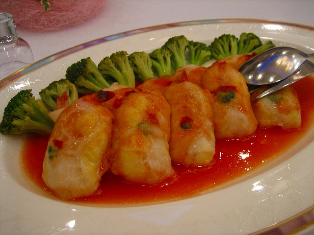エビを白身で包んで蒸したもの?。なかなかの美味しさです。