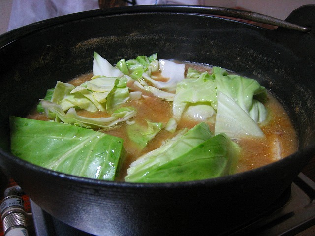 鍋の〆にキャベツを頂き、これまた美味しい!。