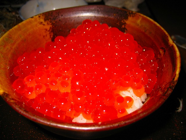 それと、真っ赤なイクラ丼!たっぷりでツヤツヤ!