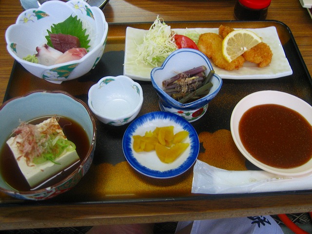 刺身、ホタテフライ、冷や奴、山菜などがありました。