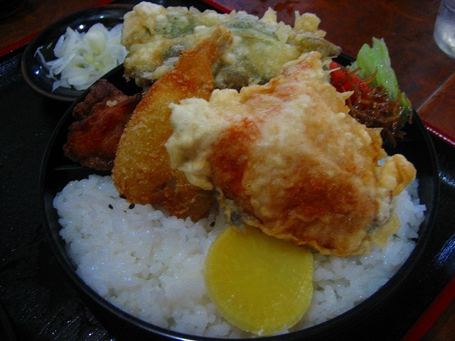 天ぷらやフライなどボリューム一杯です。ご飯はテーブルに備え付けさ