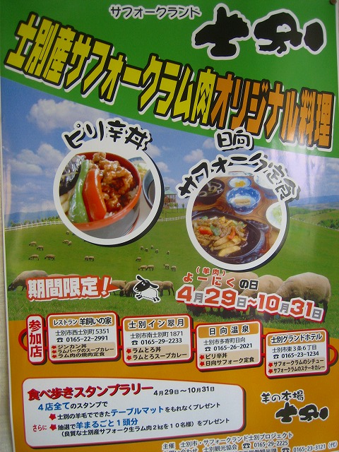 士別産サフォークラム肉食べ歩きスタンプラリー第2弾は
