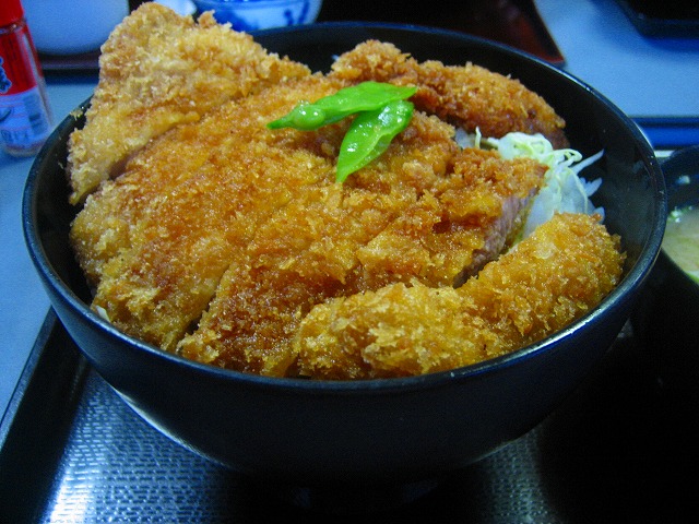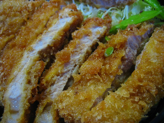 揚げたてのカツが丼からはみ出る位です。