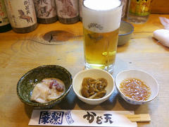 まずは、付き出しで乾杯!。