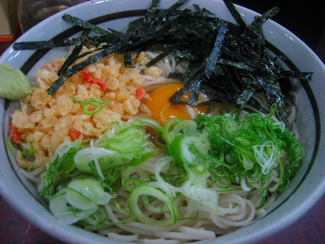 卵、揚げ玉、のりなどがのってます。大盛だと結構な量でした。