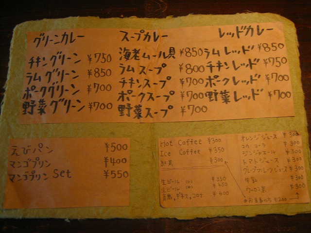 大きく分けて、グリーンカレー。スープカレー。レッドカレーの3種類が