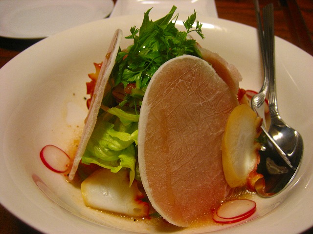 生ハムとシーフードのサラダです。