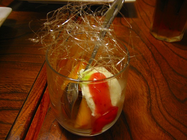 綺麗な飴細工がのったデザートです。