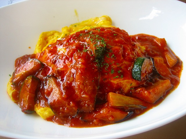 揚げなすとズッキーニー入りミートソースオムライスのセット(¥900)