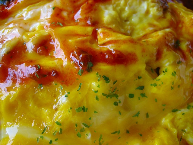 とり~り半熟卵に包まれて、ミートソースがのったオムライスです。