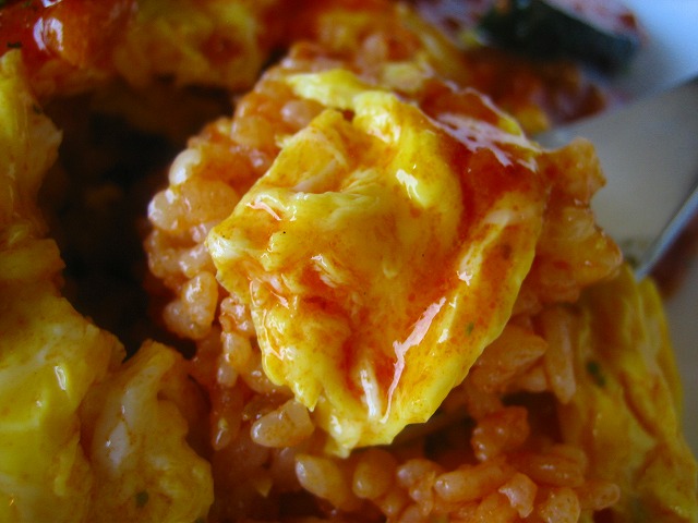 中のご飯も味付けが濃すぎず、濃厚なソースと半熟卵にマッチします。