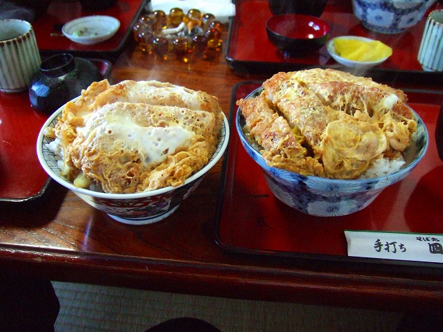 今回は、私がカツ丼セット(完食)、嫁がカツ丼(少し残して、小2の娘が補食)、娘が天ぷらそば(そばを私が若干いただく)。