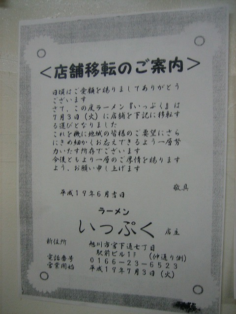 住 所:旭川市宮前通8丁目アサヒビル地下(7月移転で駅前ビル)