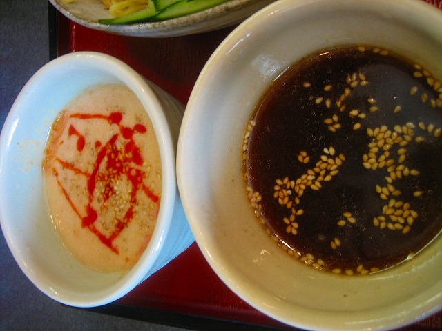 2種類のつけ汁です。ラーメンスープで割ったあっさりとほんのり酸味