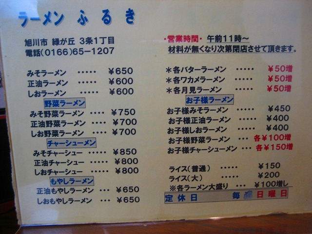 店 名:ラーメンふるき