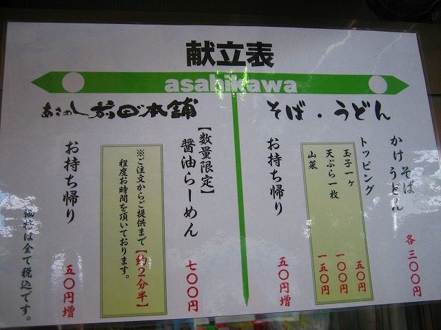 旭川以外にも支店があり、最近は、札幌のラーメン横丁にも支店ができたようですね。