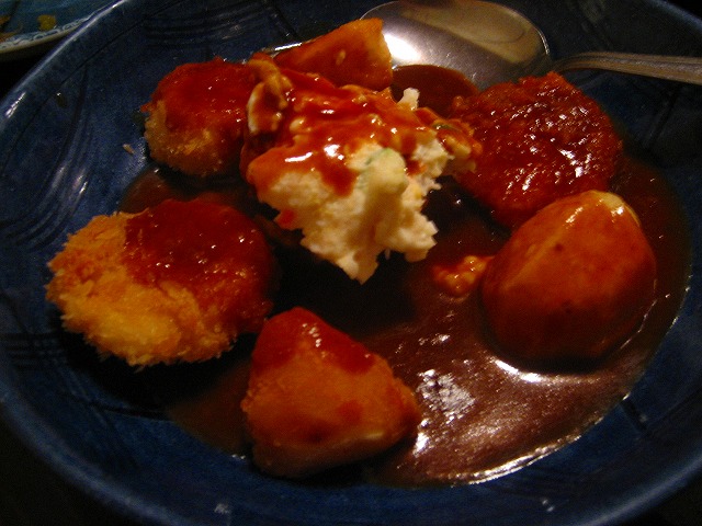 ホタテフライのデミグラスソース添え。ちなみに、ここのビーフシチュ