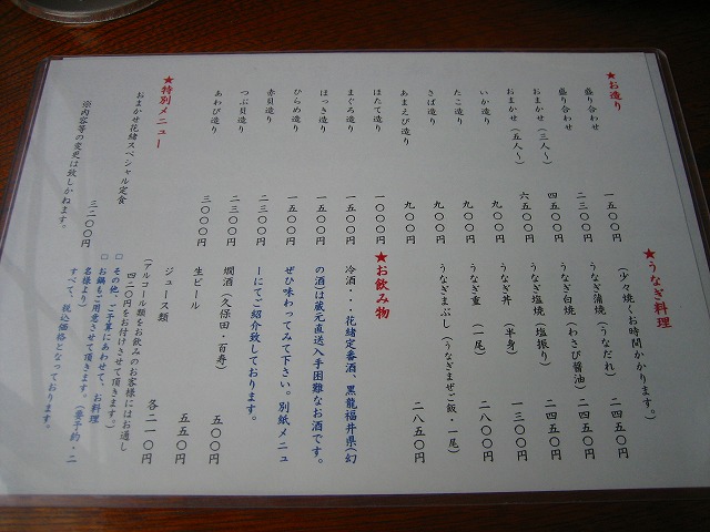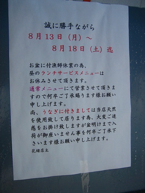 お盆期間は、ランチメニューなし。しかも、鰻もない。(残念)