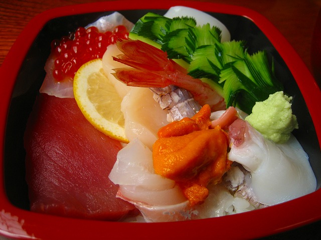 うにも乗ってます。キュウリが綺麗な飾りをしています。