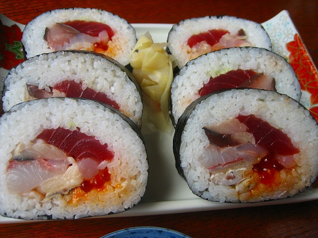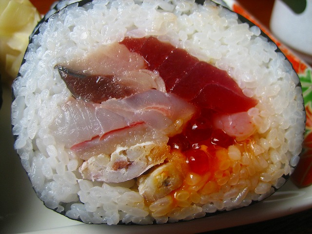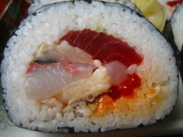 極上なネタばかり何種類も入った太巻きです。しかもデカイです。