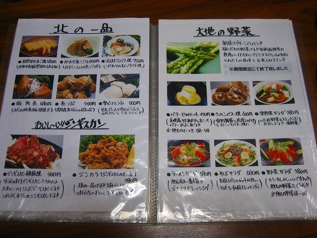 北海道的料理が多数あります。内陸でありながら、北海道各地の美味し