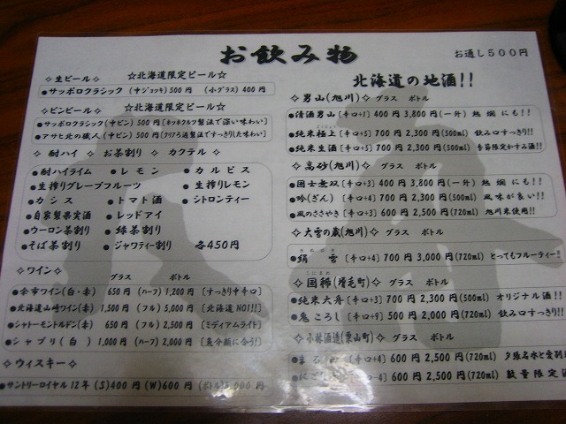 大阪のいとこ達と旭山動物園見学をした後、居酒屋に行くことにしました。