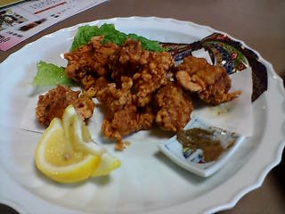 私が来るまで、お刺身とザンギを食べながら待っていたようです。(OKUSAMA撮影)