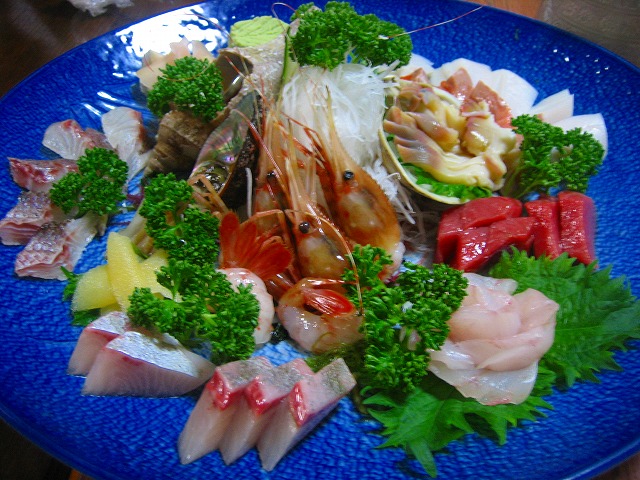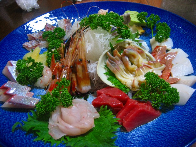 では、早速、噂の刺身盛り合わせを頂きましょう!。