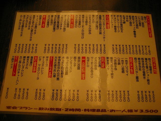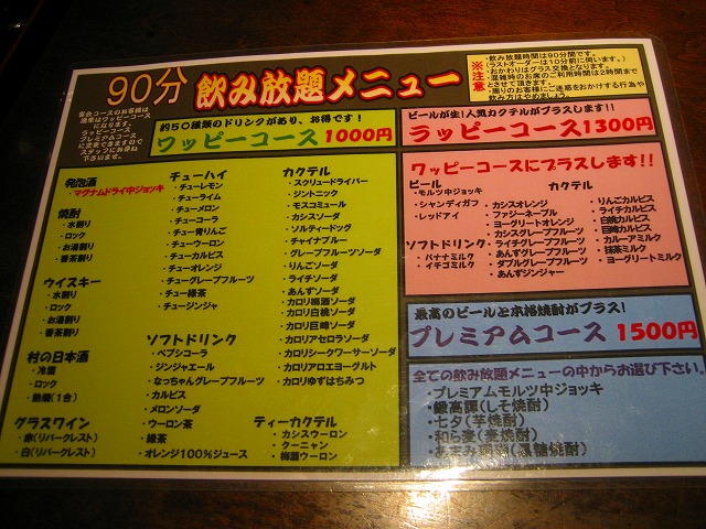 飲放メニューですが、安いからしかたがありませんが、ビールは発泡酒