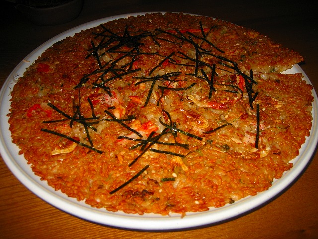 醤油ベースのやき飯をせんべい状にして焼き上げています。
