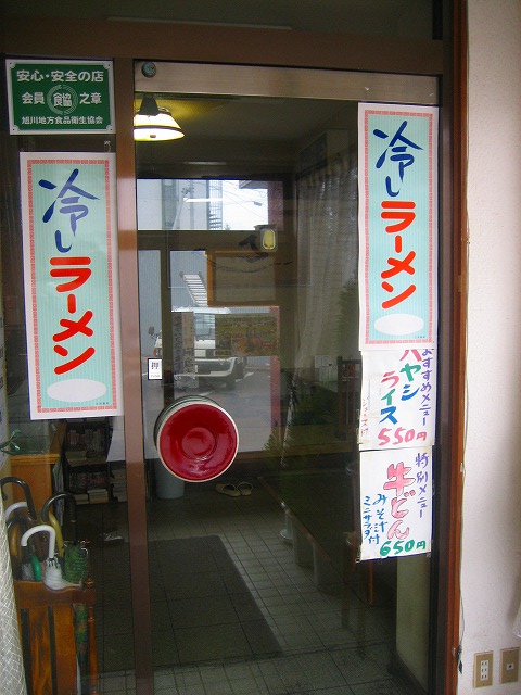 玄関に冷しラーメンの看板があります。(やった!) 本店 は何度か訪