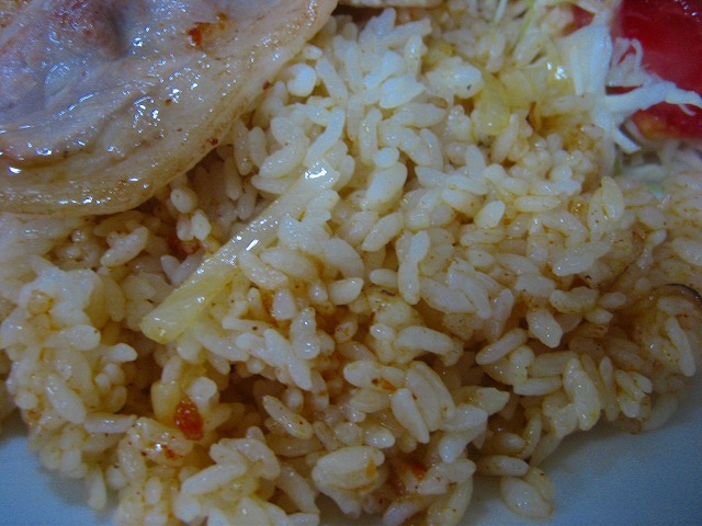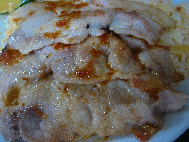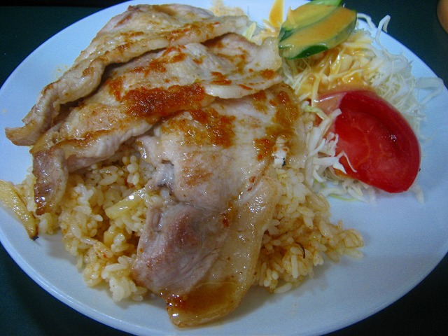 生姜焼きのタレとバターライス風なピラフが絡まり絶妙に美味しいです。
