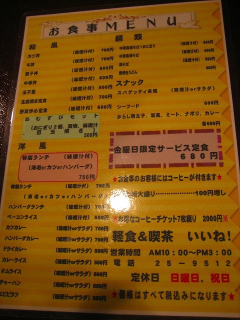 色々食べていないので解りませんが、昔ながらの喫茶店でのお食事とい