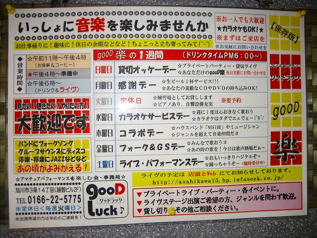 店 名:カフェ&ライブ グッドラック