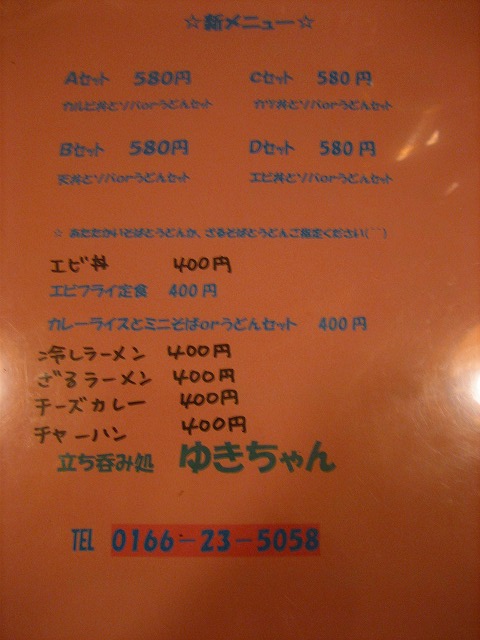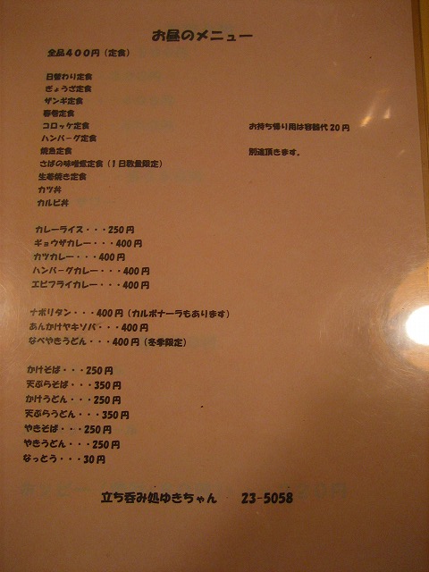 そういえば、以前報告した立ち呑み処ゆきちゃんのお昼のメニューに