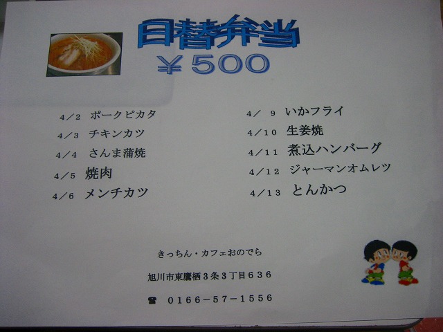 ここの「おのでら」は、日替弁当をはじめ、豊富なメニューが安価に