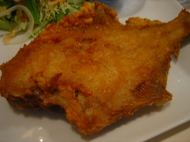 からっと揚がったカレイと彩りの良いサラダが美味しいです。